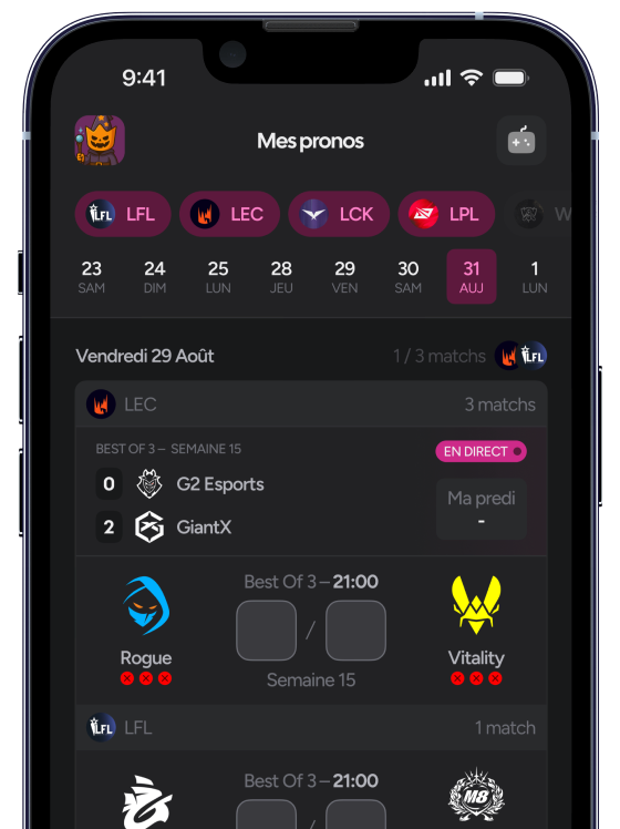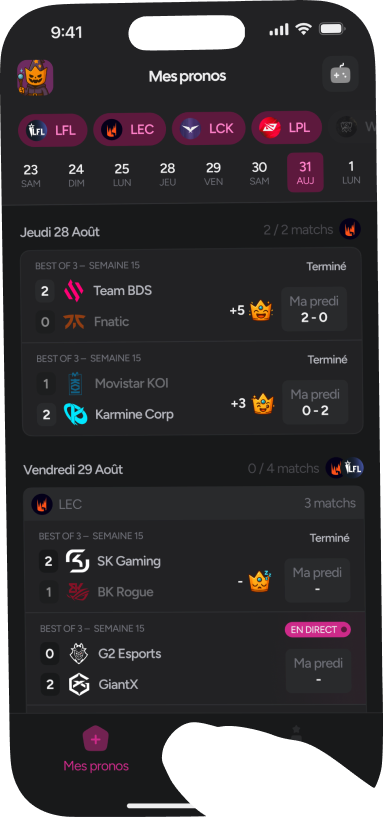 Predi.gg — l’app 100 % esport qui te permet de faire tes prédictions, défier tes potes et prouver que t’es LE vrai connaisseur.